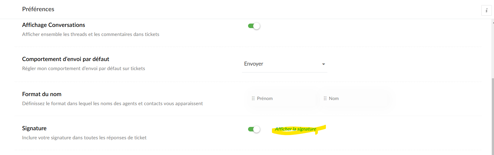 Étapes pour ajouter une signature dans Zoho Desk :