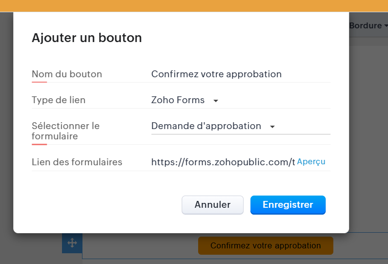 Ajout d'un bouton qui va envoyer un formulaires de Zoho Forms pour mettre à jour les champs dans Zoho CRM